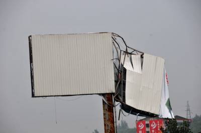 17日晚,郧县连续多日的高温无雨天气被电闪雷鸣和强降雨狂风所打破,当晚6:30分晴空万里被乌黑云层所代替,随着不断闪电和打雷强烈的狂风与暴风不断到7:20分由东向西的狂风暴雨又由西向东刮过来,形成白雾式的强降雨历时40分钟。当夜郧县消防大队不断出警救援至晚九时结朿,当夜郧县城区损失严重,郧阳桥北侧1.5米高100多米长护栏被强风吹飞,楼顶太阳能,隔热层水泥瓦,铁皮瓦被吹飞,上搂自来水管也被吹断,许多工棚和厂房被吹跑,许多大树被吹断吹倒,许多大型广告牌也被吹坏或严重变形,局部强风达11级,给郧县造成一定损失,目前各部门正在恢复强风暴雨破坏的设施。