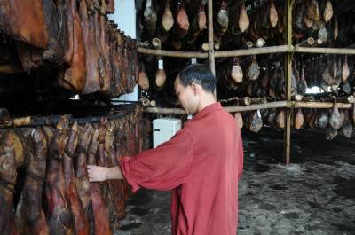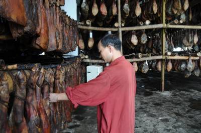 土家特色腊肉夏季腌制加工忙 8月19日,恩施市思乐集团腊肉腌制生产加工车间,一工人师傅正在翻看夏季生产加工的土家腊肉成色。 近年来,思乐集团提档升级土家腊肉烘烤腌制生产工艺,攻破只有寒冬腊月腌制土家腊肉制品的技术难关,研发出夏季也能腌制加工土家腊肉的生产技术工艺。目前,该公司每年土家腊肉腌制品年产值突破亿元,仅今年上半年土家腊肉腌制品销售额就已突破5000万元。 视界网 刘伦 摄