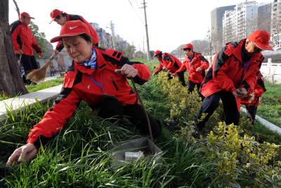 12日,沙市的老姨妈们正在清理社区花坛中的垃圾。荆州市沙市区云桥社区彭国珍服务队全部由离退休的老年人组织,以湖北省优秀党员彭国珍名命名,服务队成立一年多来影响不断扩大,目前发展到7个分队,共77人。他们在社区义务从事文化宣传、爱心帮扶和环境卫生清扫等服务工作,既美化了生活环境,又亲近了居民关系,同时还丰富了队员们的晚年生活。(记者杨平摄)