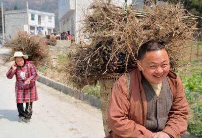 3月12日,恩施市沐抚办事处的村民正把免费领到的树苗背回家。植树节当天,恩施各地掀起植树热潮,各县市根据实际情况向百姓免费发放树苗,所有树苗全由政府埋单,此举同时也是恩施在实施生态立州战略上所采取的具体措施。记者谭琼辉摄
