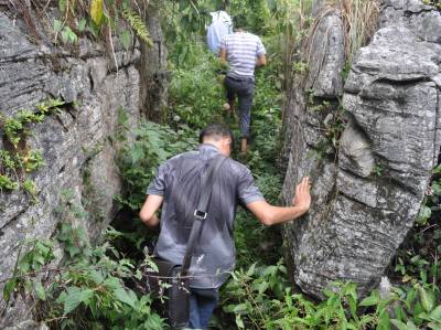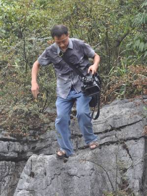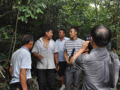8月21日,来凤县电视台记者莫北召与革勒车乡天上坪村的村民一道上山寻找水源。