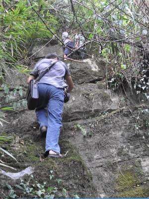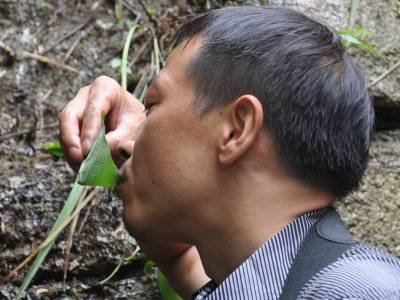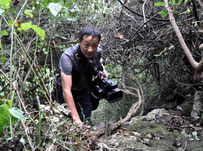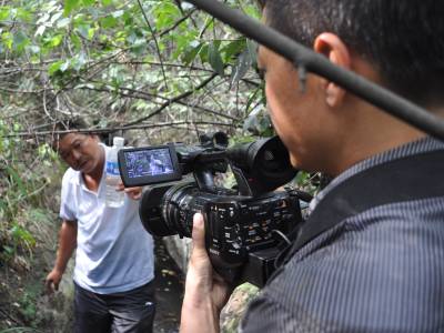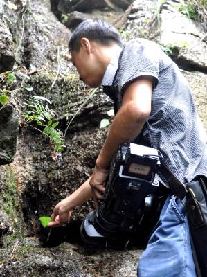 当日,乡里派出水利水产服务中心与天上坪村委会及部分村民一道,按照年长者提供的水源点上山寻找水,莫北召一路跟踪拍摄。上午2小时,下午3个多小时,3个水源点,近8公里的陡峭绝壁攀爬,虽有几位村民在前面砍路,莫北召的手上、脚上已多处荆棘被划出无数道血口。渴了用树叶接一捧岩石上渗出的滴滴泉水,饿了与村民一道摘野果充饥。一路下来,汗水湿透了衣背,但村民不畏艰难漫山寻水的真切画面却在摄像影里不断定格。一路下来,莫北召一边用摄影机记录一边与村民交流:“不苦不累是假的,但比起村民的缺水之苦,出身汗,出点血又算得了什么”。