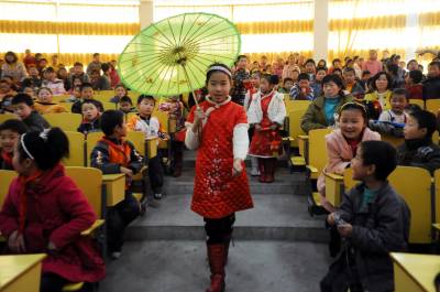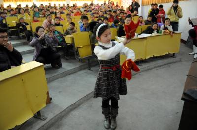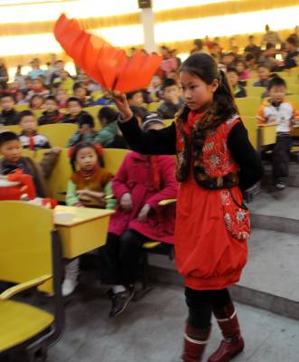 教室里秀古装3月12日下午,襄樊十中的阶梯教室里,包饺子、剪窗花、写春联……一系列的中国传统文化活动热火朝天地进行着。这是十中小学部举行的”红红火火中国年”活动,给了同学们一个展示的机会。今年寒假,十中小学部各班布置的寒假作业是:春节期间学拜年、学包饺子、学剪窗花、书写春联、收集祝福短信、了解春节习俗等。在”民俗表演”环节,同学用自编自演的小品、相声、儿歌等丰富多彩的形式将春节民间习俗一一生动地展呈现出来;包饺子比赛中,白花花的饺子皮在同学们手中上下翻转,动作之熟练令评委老师也瞠目结舌。最令人期待的压轴戏时装表演终于开始了,小演员们身着庄重典雅的唐装、摇曳多姿的裙装、绚丽时尚的冬装和活力四射的运动装一组一组粉墨登场了。猜一个灯谜、跳一支舞、弹一首琵琶曲、对一副对联……。学校负责人介绍,这次活动,是对寒假实践作业”过中国年”系列进行的一次展示和评比,也让学生领略传统文化的魅力。