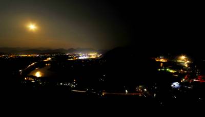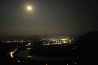 昨夜,几个影友相约拍摄月光下的竹山城夜景,由于技术上的原因我把月亮拍成了太阳,光芒四射,另有一番风味。