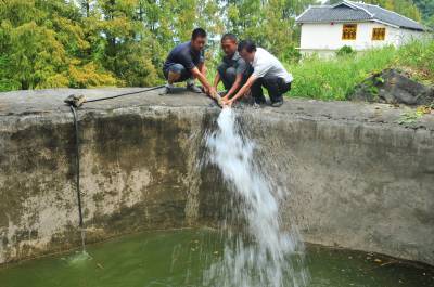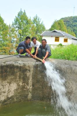 送水服务队送来及时“贴心水” “十分感谢政府多次给我们送水,我家的213头猪不愁没水喝了。”8月23日,在恩施市三岔乡三元坝村打洞组,看到甘泉流到自家的备用水池中,养殖大户胡兴华心里难掩激动。   该乡是恩施州生猪养殖大乡,干旱持续,该乡8个村出现不同程度的缺水,人畜用水严重不足。该乡干部组成送水服务队,通过3辆运水车,为农户、蔬菜种植大户及70余户养殖大户送水250余台次,把温暖送到百姓心头。   通讯员 谢顺 摄 恩施新闻中心 谢顺 13277590198
