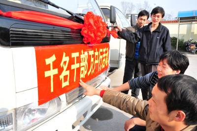 2010年3月12日,湖北宜昌市夷陵区在”千名干部万户行”活动中,将农村能源后续服务体系建设项目的25台沼液运输车配送到农业企业、乡镇和农户,免费为发展循环农业经济的企业、农户提供硬件设备。2010年,该区启动循环农业试点重点项目建设,带动柑橘、茶叶、优质畜牧三大产业提档升级,帮助农民增收致富。本报视界网张国荣摄