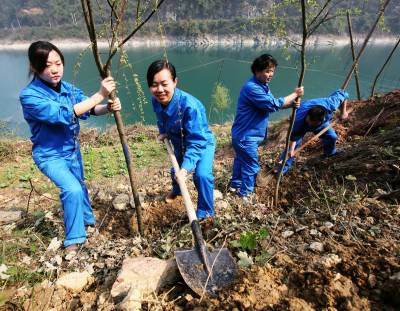 宣恩县青年在参加义务植树活动。3月12日,宣恩县县直机关干部职工300余人到县城双龙湖南岸开展义务植树造林活动。当天共种下樟树、柳树和凤尾竹等苗木1000余株,种植面积15亩。