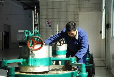 3月12日,湖北采花茶业公司水仙分厂工人正在对茶叶加工机械进行全面检修。春茶开园之际,采花茶业组织技术人员对茶叶加工机械开展保养维护,提前做好茶叶加工生产高峰期的准备工作。(本报通讯员肖永奎摄)