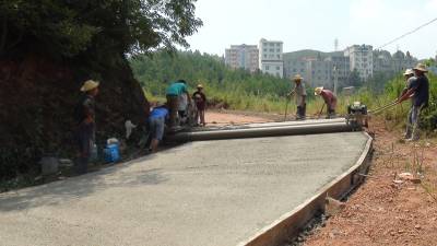 8月26日,巴东县溪丘湾乡大土坪村通畅公路施工现场,工人们正在加紧浇筑水泥路面。 今年,该乡抢抓机遇大办交通,整合争取老区建设、通畅工程、彩票公益金项目、生态家园路等资金2000余万元,全力打造通畅工程21公里,建设生态家园组级路36公里,方便全乡2万余名群众生产生活。 据悉,该乡目前有通畅公路156公里,今年将延伸至177公里。(本报视界网 陈开平 李宽仁 摄)
