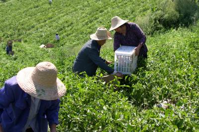 房县高山蔬菜喜获丰收 8月26日,房县野人谷镇西坪村村民正在毛湖淌高山蔬菜基地采摘青椒。该镇地处海拔1600多米的高山,土壤肥沃无污染,适合种植高山蔬菜。近年来,全镇大力发展高山无公害蔬菜产业,种植面积达6000亩,预计可实现产值3600万元。(杜达巍 况建斌 摄)