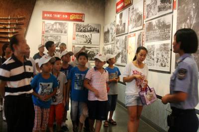 8月27日,孝感市工商局组织市局机关部分离退休干部和部分干部青少年子女30余人,开展“老少手牵手,同心跟党走”红色主题的群众路线实践教育活动,分别到驻孝某部军史馆、孝感博物馆、孝感烈士陵园参观学习,让青少年朋友感受历史、缅怀先烈、树立远大志向。图为参观人员在驻孝某部军史馆听取讲解。 此图片已经获得驻孝感某部秘书科、宣教科统同意,允许发稿。 孝感市工商局