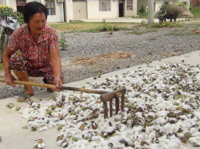 连日来,汉川市沉湖镇老塔村的棉农开始采摘、晾晒成熟棉桃,与去年同期相比提前了上10天。由于连续一个月来高温干旱,造成棉花干枯,以致棉铃桃提早炸裂,对于这些不正常的成熟棉桃,如不及时采摘,就会霉烂脱落。沉湖镇棉花13000亩,都因干旱全部受损,为尽量减少损失,棉农进行了及时的采摘、晾晒。(通讯员孙文平 摄) 通联:431625汉川市西江宣传办公室 孙文平 15172226580