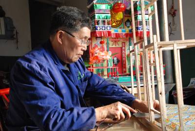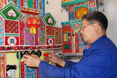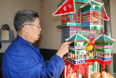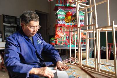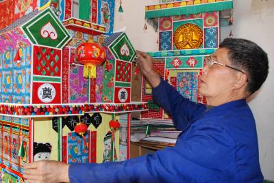 3月14日,覃守湮老人正在糊制祭祀用品”灵屋子”。今年70岁的覃老,虽年老体弱,但擅长糊制土家族传统祭祀用品,糊制祭祀用品每年可为他带来近两万元的收入,这门手艺让覃老老两口衣食无忧、安享晚年。(本报通讯员肖永奎摄)