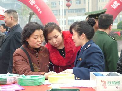 3月13日,恩施市工商局执法人员正在指导市民如何辨别真假名酒。当日,恩施市政府在州城举行了3.15国际消费者权益日纪念活动,今年的主题是”消费与服务”,州及恩施市工商、消防、农业、烟草等部门纷纷组织工作人员现场向市民介绍辨别商品真假和优劣的方法技巧,并接受广大市民的相关法律法规咨询。通讯员周光兵摄另一张是”3月13日,恩施市工商局执法人员正在指导市民如何辨别电线的好坏。”