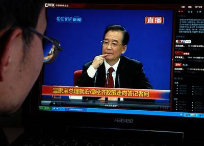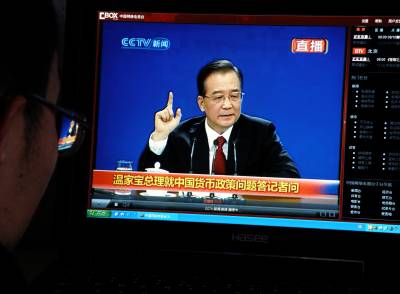 湖北宜昌:网民关注温家宝总理答记者问2010年3月14日,湖北宜昌市,网民通过中国网络电视台观看温家宝总理答中外记者问。当日,十一届全国人大三次会议闭幕,中国国务院总理温家宝与采访”两会”的中外记者见面并回答记者提出的问题。