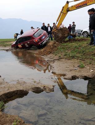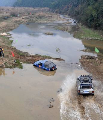 越野车”秀”乡村13日,来自武汉、黄石、大冶三地的67名越野车车友齐聚大冶市灵乡镇毛铺水库滩涂,参加大冶市首次越野车比赛。此次越野车比赛由大冶风云网主办,赛场为灵乡镇毛铺水库坑坑洼洼、沟壑纵横的滩涂,及数个人工修筑的土坡。比赛内容为各参赛越野车快速通过土坡及滩涂等。比赛中惊险场面不断,有的越野车在深度涉水时”抛锚”,有的越野车掉进坑里。在参赛车辆中,不乏悍马、路虎等世界著名品牌的越野车。 据介绍,像这样规模的越野车比赛,还是首次在大冶市举办。黄石市黄石日报摄影部邱孝威摄