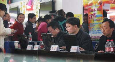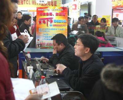 ”家电下乡”现场直补惠民3月15日,随州市商务局、财政局和购物中心联合推出家电下乡现场补贴活动。给广大农民现场进行商家信息录入、财政部门审核、现金补贴兑付。当天实现补贴300多户,补贴资金十余万元。据了解,截止二月底,该市共销售家电下乡产品10.8万台(部),销售金额2.3亿元,已兑付补贴9.9万台(部),发放补贴资金3000多万元.本报视界网杨文明摄电话:13872860263