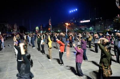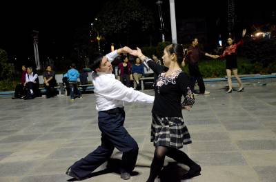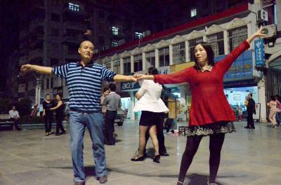 9月7日,在宣恩县河滨广场,人们享受着夜幕下欢乐。他们结伴成群,在广场上尽情的摇摆。