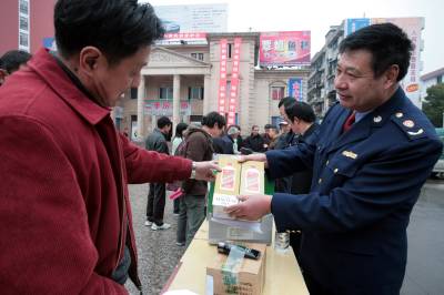 枝江开展拉网式打假3月15日,枝江市执法人员正在引导消费者辨假、识假。当日,湖北省枝江市工商局、质量技术监督局、食品药品监督管理局的执法人员深入到城乡,指导、引导了2万多名消费者辨假、识假。据悉,该市近期共对大型超市、市场、城乡结合部的1800家食品经营户、800家质量商品经营户进行了检查,共纠正轻微违法行为30起,利用快速检测设备对流通环节食品质量安全快速检测712批次,共检出不合格食品36批次,下架退市不合格食品172公斤。刘卫东摄