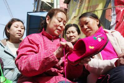 昨日,荆门市东宝区龙泉街道金虾河社区的居民正向张群学习毛线编织拖鞋技法。据了解,在下岗职工张群的带动下,金虾河社区活跃着近百名爱好手工编织的居民,她们经常在一起互相交流、学习编织技法,并成立”张姐编织店”,将大家制作的毛线编织鞋推向市场。视界网签约摄影师朱运兵摄