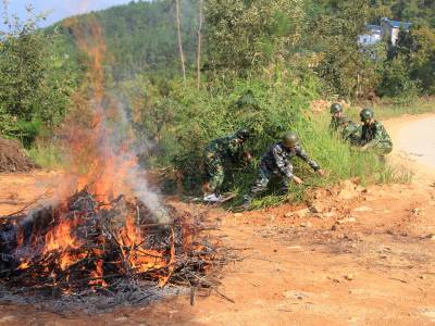 9月18日,扑火应急队员在进行灭火。当日,巴东县安监局组织扑火应急队在该县金果坪乡进行了扑火实战演练,进一步提高扑火应急队员对森林火灾扑救的实战能力。
