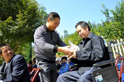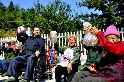 “爱心月饼”暖心窝 9月19日,在恩施市红土乡福利院广场上,企业爱心人士黄大忠正在给院民分发“爱心月饼”。 近几年来,恩施市前龙煤矿有限公司在发展的同时不忘回报社会,每年都带着浓浓爱心到福利院看望孤寡老人,给他们送上节日的问候,并为他们送上了中秋“爱心月饼”,受到了社会好评。(本报视界网彭绍峰摄)