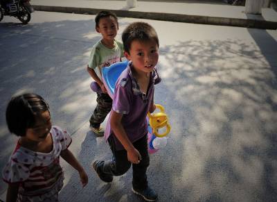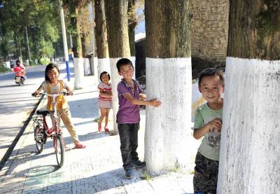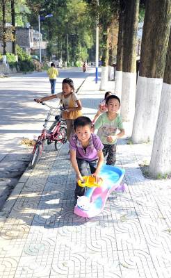 9月19日,恩施市沐抚办事处几个儿童在马路上玩,铃铛般的笑声回荡在林间。