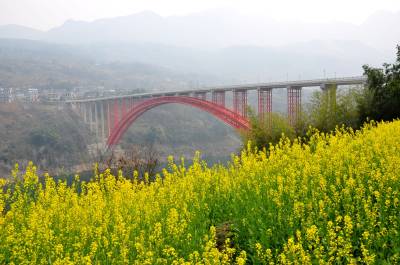 这是3月13日在清江水布垭库区拍摄的盛开的油菜花。时下,春光明媚,水布垭库区两岸的油菜花竞相绽放,黄花、绿水、红桥和徽派民居,构成了一幅美丽的山水画。