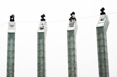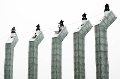 2013年09月22日,湖北省襄阳市,工人正在维修沿江大道上的景观造型灯,以迎接国庆节的到来。