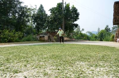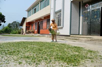 9月20日,宣恩县万寨乡千师营村村民正在晒红薯藤,晒干后的红薯藤有利于保存。