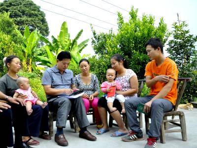 9月22日,在恩施市红土乡老村村中坝组,计生工作人员正在入户核实育龄人群有关信息资料。
