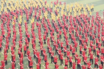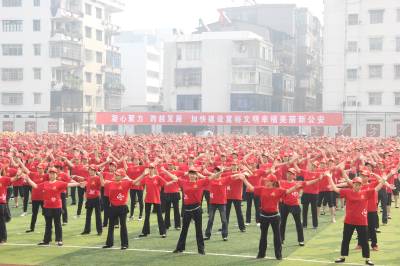 今日,近2000名来自全县各地的广场舞爱好者载歌载舞,共同参加此次“最炫孱陵风,祖国在心中”万人同跳广场舞活动。为了配合我县省级文明县城创建工作,我县组织举办了"牵手文明公安,建设美丽家园”系列文化活动。“最炫孱陵风”广场舞蹈大赛作为其中的一项重要内容,自活动开展以来,受到了众多广场舞爱好者的欢迎,全县迅速掀起了“唱公安歌、跳公安舞”的热潮。(视界网王文初 摄)
