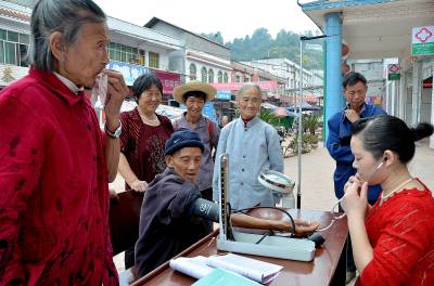 9月23日,宣恩县万寨乡卫生院,为迎接全国第16个高血压日,在卫生院门口设点,免费为群众测量血压。 活动当天,该院共发放300余份宣传册,免费为100多名群众测量血压,此举受到群众的一致好评。(本报视界网 谭海燕 摄)