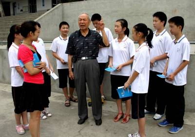 八十多岁的大悟县退休老干部黄世鹏,为同学们讲解大悟县的革命斗争史