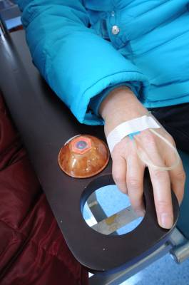 3月17日,宜昌市中心人民医院输液室护士正在指导一位输液患者如何使用座椅扶手上的无线呼叫器按钮。日前该院为门诊输液室内120多个座椅全部安装了腕式呼叫器,输液患者在输液过程中有任何要求,只要按动扶手上的按钮,护士手腕上佩戴的接收器就会振动并显示座椅编号,以便护士及时迅速处理患者要求,保障患者输液安全。宜昌市中心人民医院但军