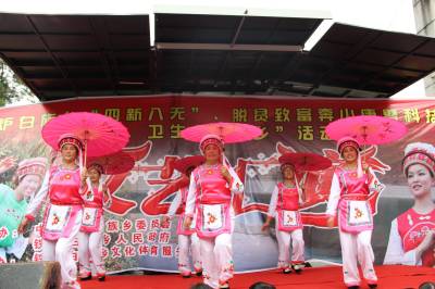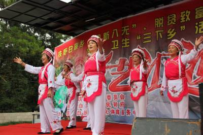 9月23日,湖北省鹤峰县铁炉白族乡组织村级文艺演出队先以“送文化下乡”的形式先后到马家、江口等村进行巡回演出,喜迎国庆的到来。 为提高全民素质,不断满足广大人民群众的精神文化生活。作为湖北省唯一的白族乡把宣传文化工作的重点放在农村农民的业余文化生活上,由乡综合文化站牵头,到各村组织老百姓开展丰富多彩的自编自导自演的文艺节目。目前,该乡呈现出一片“文化和谐大家庭”的良好局面。(摄影:万中华)