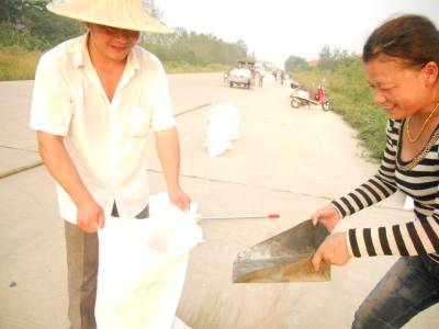 今年虽然遭遇旱灾,但汉川市开发区田家咀村农户在政府的帮扶下,种植的粮食仍然喜获丰收。图为9月21日,该村农户正忙着整理装袋刚刚晾晒干净的稻谷。 签约摄影师 邹开建 摄 通联:汉川市信访局 电话:13197382491 邮编:431600