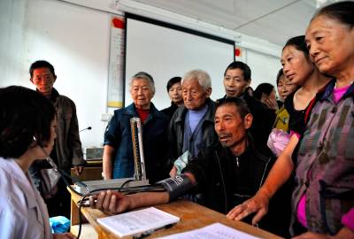 当日,湖北省秭归县人民医院组织医疗专家,冒着沥沥的小雨来到屈原镇最高海拔1780米的北峰村开展送医送药义诊活动,受到当地村民的热烈欢迎。(视界网 王家满摄)