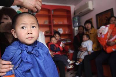 昨(17)日,是中国传统节气二月二龙抬头,荆门城区一家婴幼儿理发店一大早就迎来了小顾客,当日共为60多名婴幼儿理了发。家长们称,选这天来理发,只为取”龙抬头”之意,祈求孩子能有好运。(本报视界网宁新生摄)