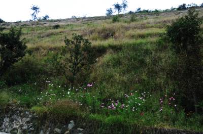 2013年9月26日,在进入湖北十堰经济技术开发区港澳台工业园公路边上的山体边坡上,该区通过客土喷播施工技术将这里曾经岩石裸露山体变成了郁郁葱葱的公路护坡。