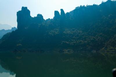 前几天,有机会游览了恩施清江画廊,上午9点准时在浑水河乘船游览,下午3点返回到浑水河起岸。沿途中,清江两岸时而峰峦叠起,直刺苍穹,时而良田金黄,丰收在望;江水颜色碧绿,清澈透明,江面上时而鱼儿跃动,时而鹭鸟群翔。真是九曲清江百座崖,千回百转万副画。清江的山,清江的水,清江的人,她如诗如画,如梦如歌,当你畅游其间,足以使人惊愕亢奋、心旷神怡。