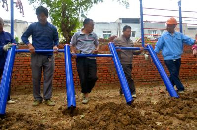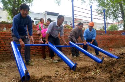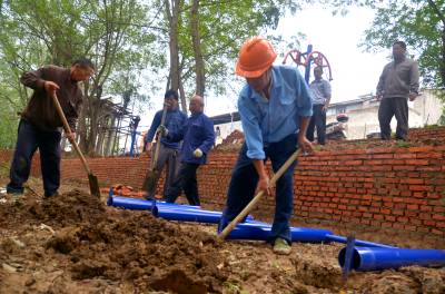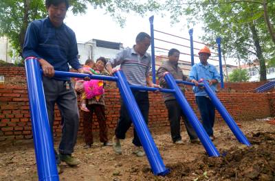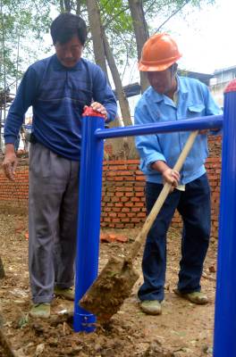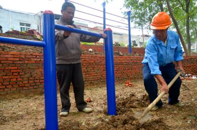 铺砖、安装健身器材、搭建凉亭…… 9月27日,云梦县沙河乡湖田村村民正在抓紧建设该村的村民健身休闲广场。为了切实丰富村民的业余文化生活,改善民生、提升农民幸福指数,该乡总投资近200万元,全乡21个村,村村都有健身场所,目前已有15个村建有休闲广场。其中,湖田村预计投资50万元建群众休闲广场,不仅要安装7套健身器材,一个近20平方米的休闲广场和一个凉亭已初具雏形。 王云清 唐雄艳 摄