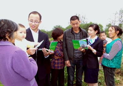 9月27日,京山农村商业银行两名员工正在给永兴镇群光村养殖大户朱华和附近群众讲解有关电子银行的知识。9月份,该行利用送金融知识下乡活动月之际宣传电子银行产品,有效解决农村地区结算渠道不畅的问题,养殖户不需要再专门跑到镇上营业网点办理业务,不受时间限制,受到广大养殖专业户的热烈欢迎。 本报视界网 李凯 刘环宇 摄