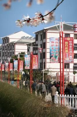 国家4A级风景旅游区所在地--京山县绿林镇,为创建旅游名镇,投入巨资完成了沿河北岸东汉休闲娱乐一条街15000多平方米房屋的改造,突出小青瓦、红线条、白墙底、木格子、斗拱飞檐等五大要素,将现代建筑材料与古典汉式建设风格融为一体,一个”规划统一、风格古朴、形式新颖、清新典雅”的”汉代古镇”含苞盛装,迎接即将到来的旅游旺季。(张文胜 摄)