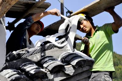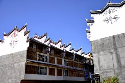 高山集镇”靓”新区 9月28日,在恩施市红土乡石窑集镇新区,工人们正在粉刷“烽火墙”。 近年来,该乡注重石窑高山集镇建设,石窑集镇位于恩施市、鹤峰县、宣恩县及建始县三县一市交界处。筹措资金1000多万元,集镇新区统一按照吊脚楼元素、翘檐舨爪、金瓜吊齐、烽火墙模式统一规划设计。硬化集镇公路2公里,改造边沟、下水道等设施,拓展集镇新区,健全集镇功能,新安装集市路灯,改扩建集镇引水工程,着于打造高山特色民居新集镇。(本报视界网彭绍峰张开纯摄)