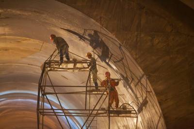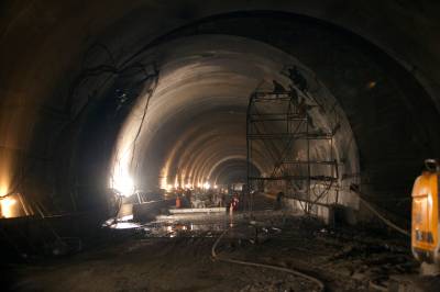 2013年10月1日,建设者在宜巴高速界岭隧道左右两道同时施工。宜巴高速控制性工程界岭隧道右道已于7月24日贯通,承建此工程的中铁十七局集团等为确保今年内通车,集中力量抢建左线隧道,由过去的两个作业面增加到六个作业日夜奋战。