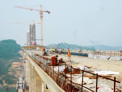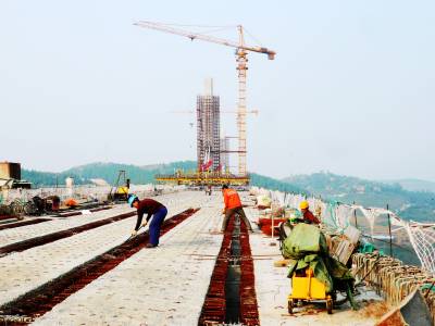 10月3日,建设者在郧十高速汉江大桥段加紧施工。郧十高速是国家中部崛起交通项目山西侯马市至湖北十堰市高速公路的湖北段,是我省骨架公路网规划“五纵五横两环”中第五纵的重要路段。该路起于鄂豫省界鹁鸽峪,经郧县、茅箭区,在十堰经济开发区与福银高速汉(武汉)十(十堰)段相接,全长67.268公里,双向四车道,设计时速80公里/小时,项目投资概算为64.79亿元,2010年12月23日正式开工建设。(本报视界网周宗华摄) 作者地址:郧县五峰乡政府