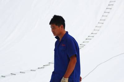 竹溪加快建设垃圾处理场 10月5日,负责施工的徐先银和工友们在国庆长假一直坚守在工地施工。竹溪县垃圾处理场设计日处理垃圾158吨,服务期限14年。工程于今年3月动工建设,11月投入使用。(本报视界网 王忠春 摄)