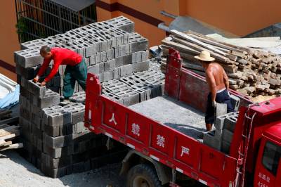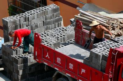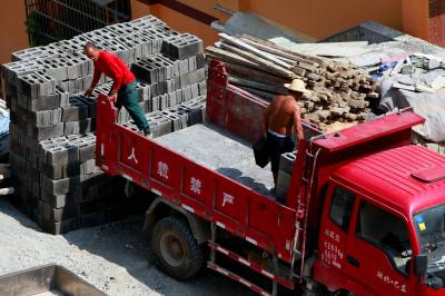 节日,他们在岗位 10月7日,2名工人在巴东县信陵镇白土坡社区东兴路移民建设工地上卸载墙砖。 国庆长假期间,巴东县三峡库区移民建设工地以及国家重点工程建设施工仍在紧张有序地进行着。不少工人放弃节日回家团圆的机会,坚守在岗位上辛勤劳动。本报视界网:梁斌 摄