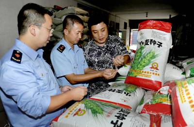 10月9日,鄂州市明堂工商所执法人员在当地农友种苗门市部检查种子。连日来,鄂州市工商局从创新“红盾护农”工作机制入手,开展为期三个月的“打假保秋播”专项执法行动,加大农资市场监管力度,严格规范农资市场经营秩序,为秋种、秋收保驾护航。视界网/方仲华摄